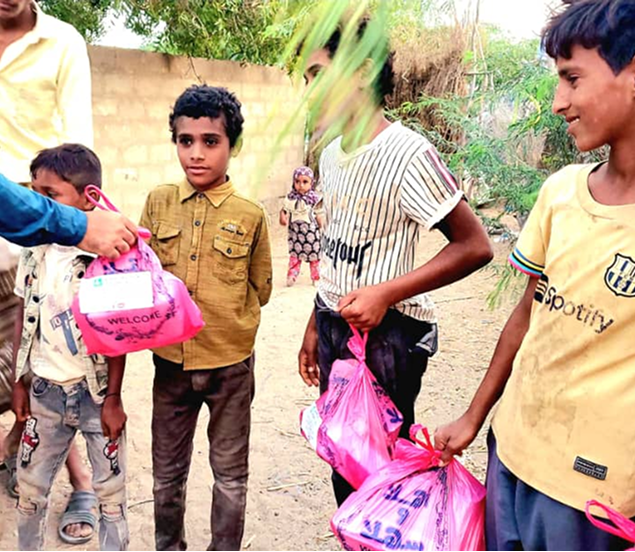 Providing food packages and essential groceries to families in need in Yemen.