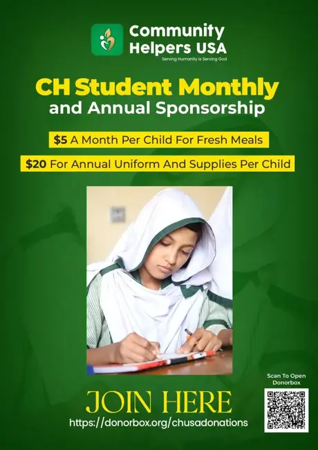 ✨🌙 Support the education and well-being of deserving children through our CH Student Monthly and Annual Sponsorship program. For $5 A Month Per Child For Fresh Meals, you can ensure they receive nourishing meals regularly. Additionally, a $20 contribution Per Child covers the cost of annual uniforms and essential supplies.