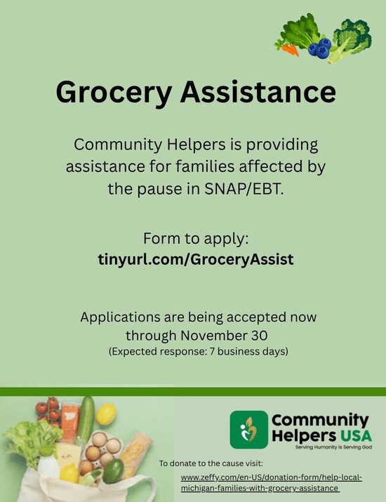 Community Helpers USA is providing grocery assistance for families impacted by the pause in SNAP/EBT benefits.