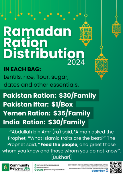By the Grace & Blessing of Allah & the generosity of our donors, Community Helpers USA is distributing Iftar & Ration for the poor & needy in Pakistan & Yemen this Ramadan